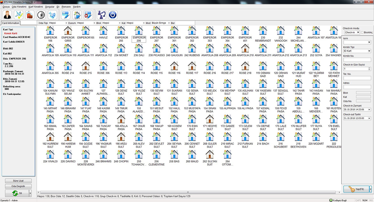 » İnteraktif kart kodlayıcısı sayesinde tek tıkla check-in / check-out yapabilme